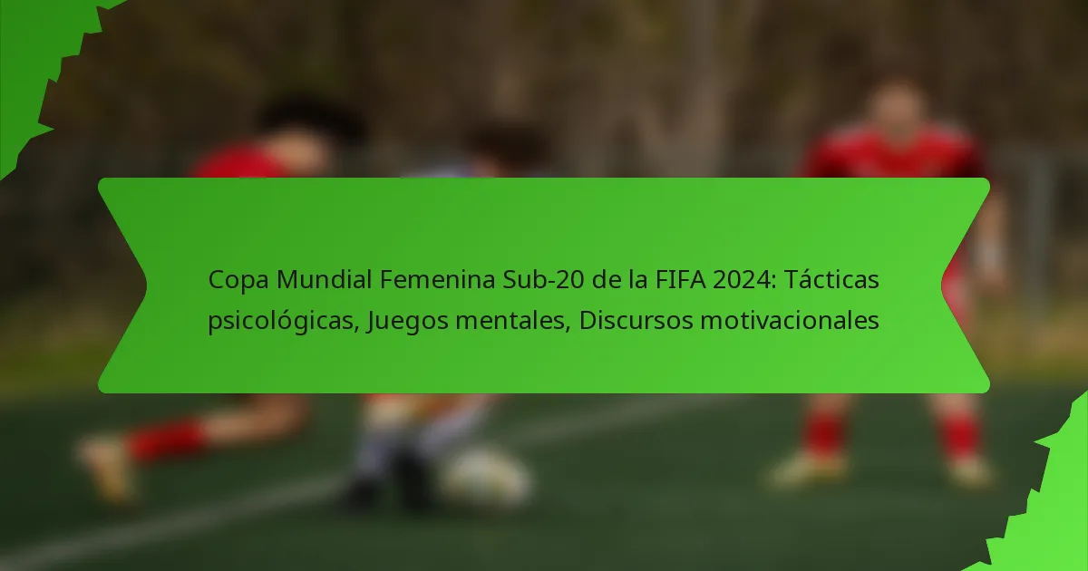 Las tácticas psicológicas juegan un papel crucial en la Copa Mundial Femenina Sub-20 de la FIFA 2024, mejorando el rendimiento y la resiliencia mental de las atletas. Estas estrategias incluyen visualización, técnicas de enfoque, manejo del estrés, ejercicios de cohesión en equipo y preparación mental previa al juego, todas dirigidas a optimizar los estados mentales de las jugadoras durante la competencia.