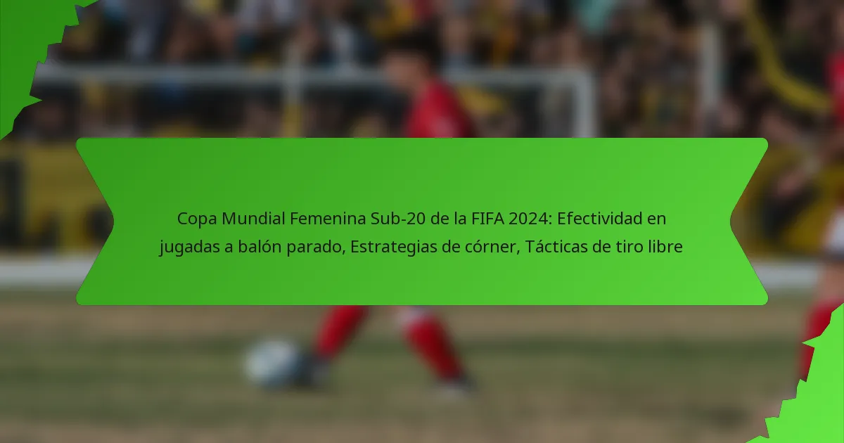 La Copa Mundial Femenina Sub-20 de la FIFA 2024 mostrará la importancia de la efectividad en las jugadas a balón parado, particularmente a través de estrategias de córner y tácticas de tiros libres. Los equipos se enfocarán en optimizar sus enfoques en estos momentos críticos, analizando los tipos de entrega y la posición de los jugadores para mejorar su potencial de anotación. Dominar estos elementos puede ser fundamental para determinar los resultados de los partidos, convirtiéndolos en componentes vitales de la estrategia general de cada equipo.