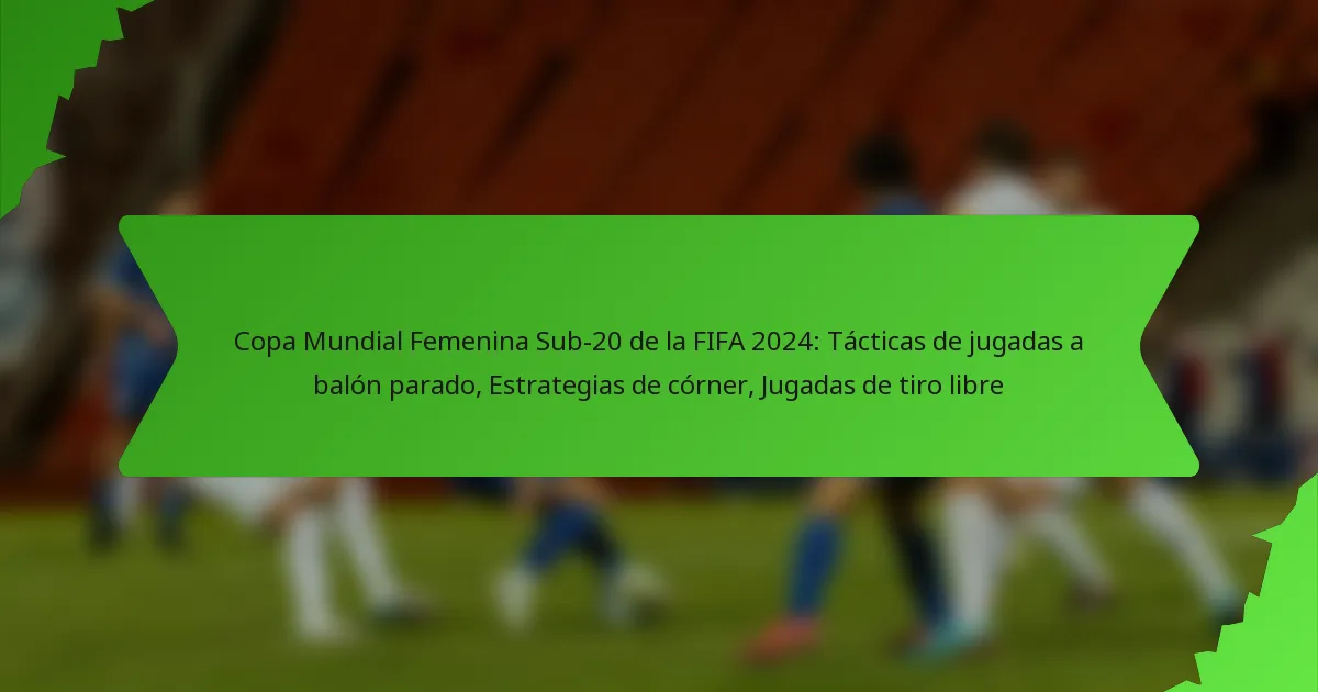 Los equipos se preparan para las jugadas a balón parado en la Copa Mundial Femenina Sub-20 de la FIFA 2024 a través de una planificación meticulosa, entrenamiento y análisis. Las estrategias efectivas de jugadas a balón parado pueden influir significativamente en los resultados de los partidos, haciendo que la preparación sea esencial para el éxito.