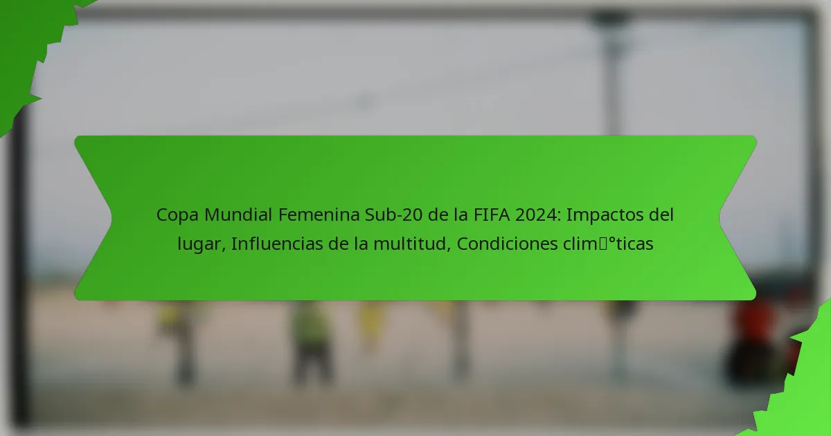 La Copa Mundial Femenina Sub-20 de la FIFA 2024 estará influenciada por diversos factores, incluyendo la selección de sedes, la dinámica de las multitudes y las condiciones climáticas. La elección de las ubicaciones no solo mejora la accesibilidad y el compromiso, sino que también juega un papel crucial en la promoción del fútbol femenino a nivel global. Además, la atmósfera creada por los aficionados puede influir en el rendimiento de los jugadores y en los resultados de los partidos, mientras que las condiciones climáticas variables pueden impactar el juego y la experiencia general tanto para los equipos como para los espectadores.